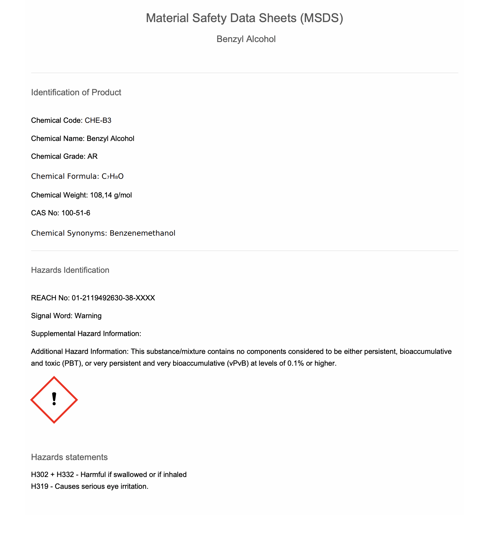 Chemical Name: Benzyl Alcohol