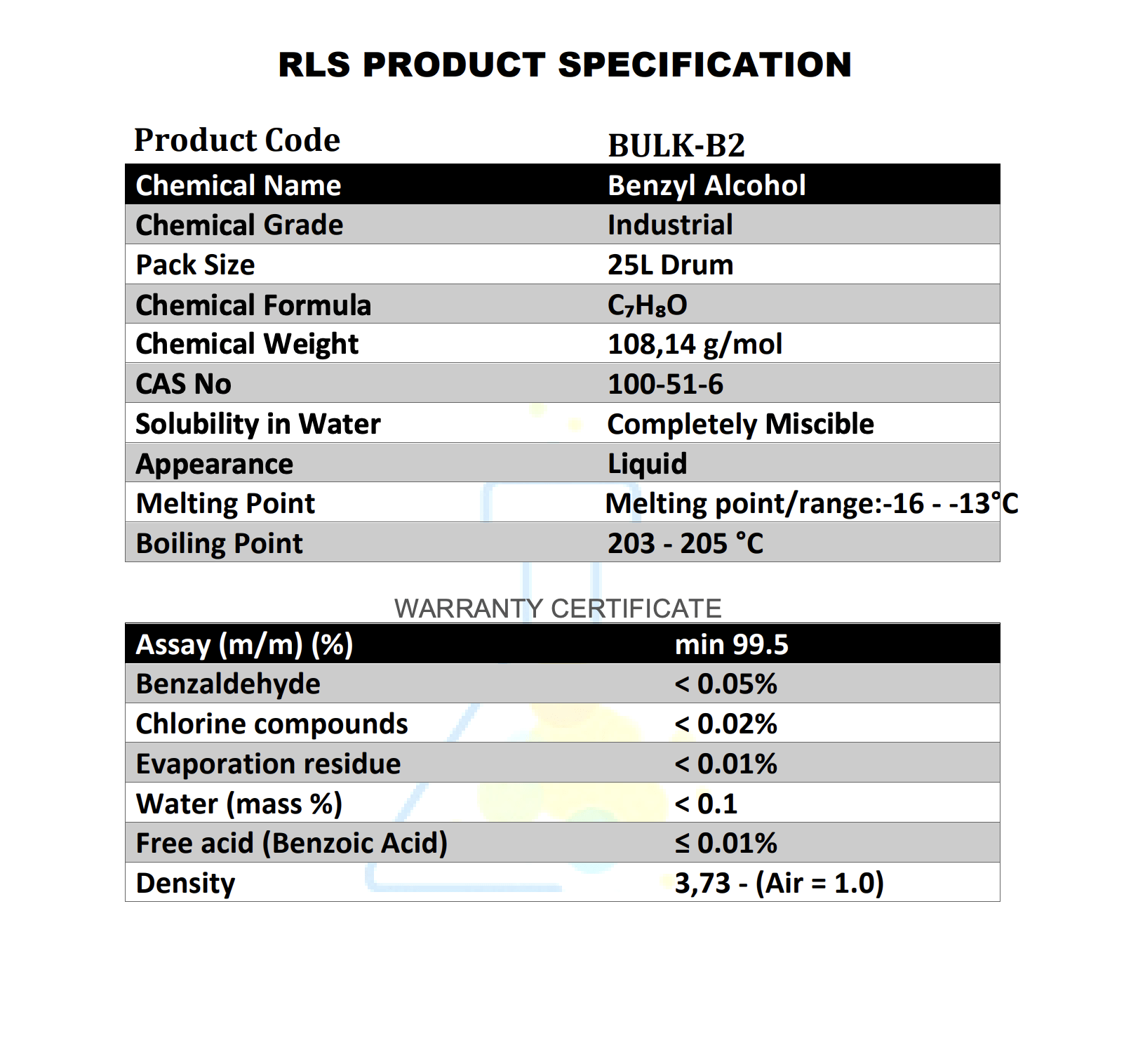 Benzyl Alcohol – Identification of Product