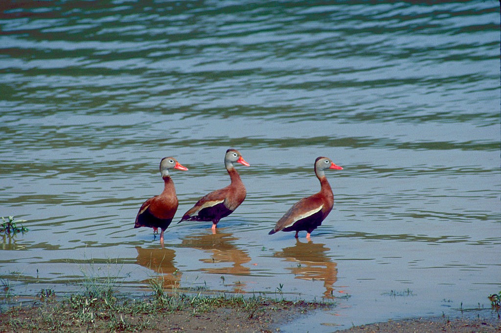 The Black-bellied Whistling Duck was also formerly called the Black-bellied Tree Duck. These ducks pair up for many years and both parents raise their young together. As the name suggests this is a noisy bird with a whistling call especially in flight.