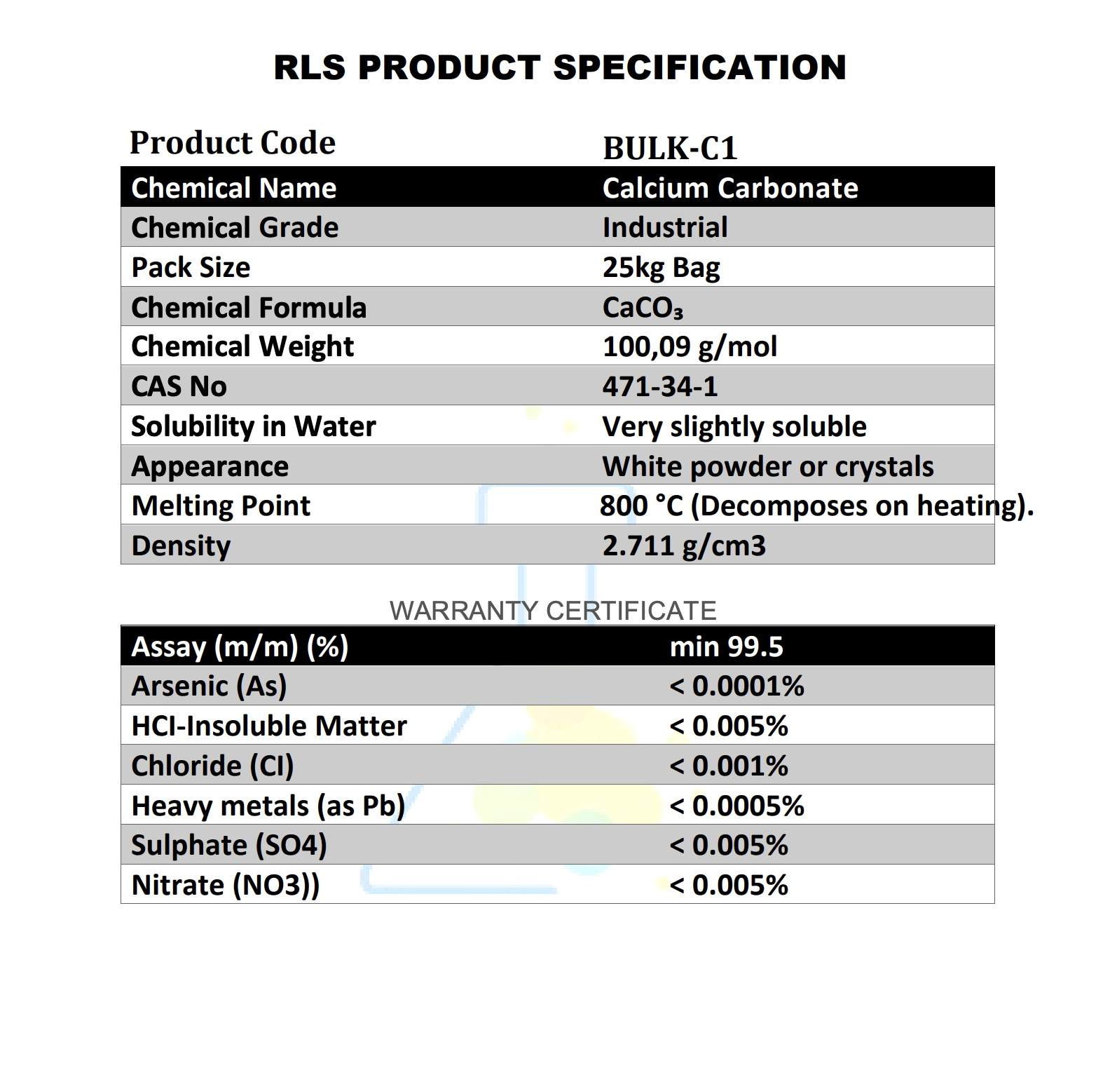 Calcium Carbonate Industrial Grade – Identification of Product