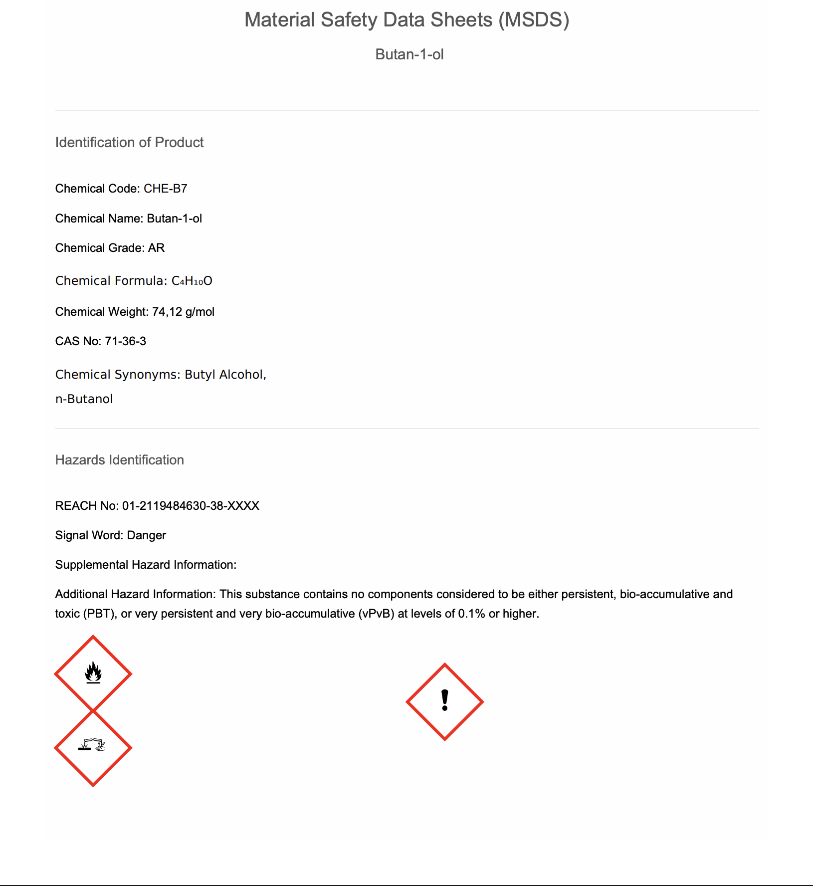 Chemical Name: Butan-1-ol